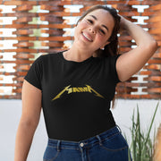 Juodi moteriški marškinėliai su auksiniu marginimu "Mama rocks"