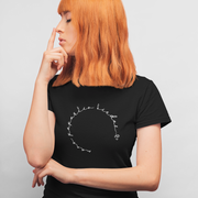 Juodi moteriški marškinėliai su užrašu "Mano paparčio žiedas"