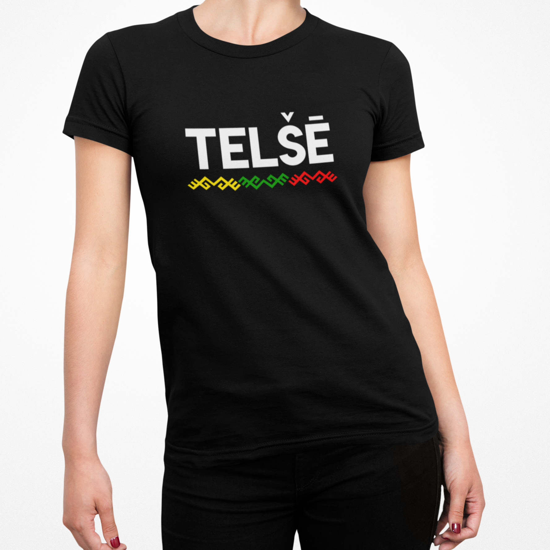 Juodi moteriški marškinėliai ''Telše su tautiška juosta"