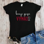 Juodi moteriški medvilniniai marškinėliai "Kraujo grupė - vynas" (S dydis). Pagaminta prekė. Greitas išsiuntimas!