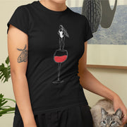 Juodi moteriški medvilniniai marškinėliai "Vyno ledi"