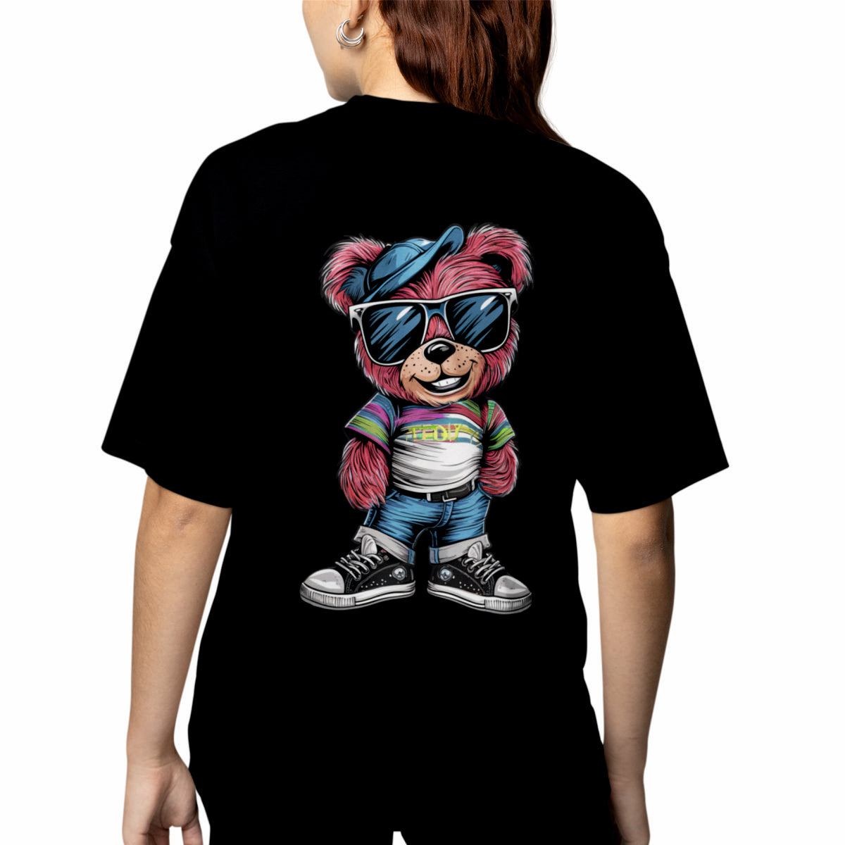 Juodi OVERSIZED marškinėliai su spauda ant nugaros "Kietas meškiukas"
