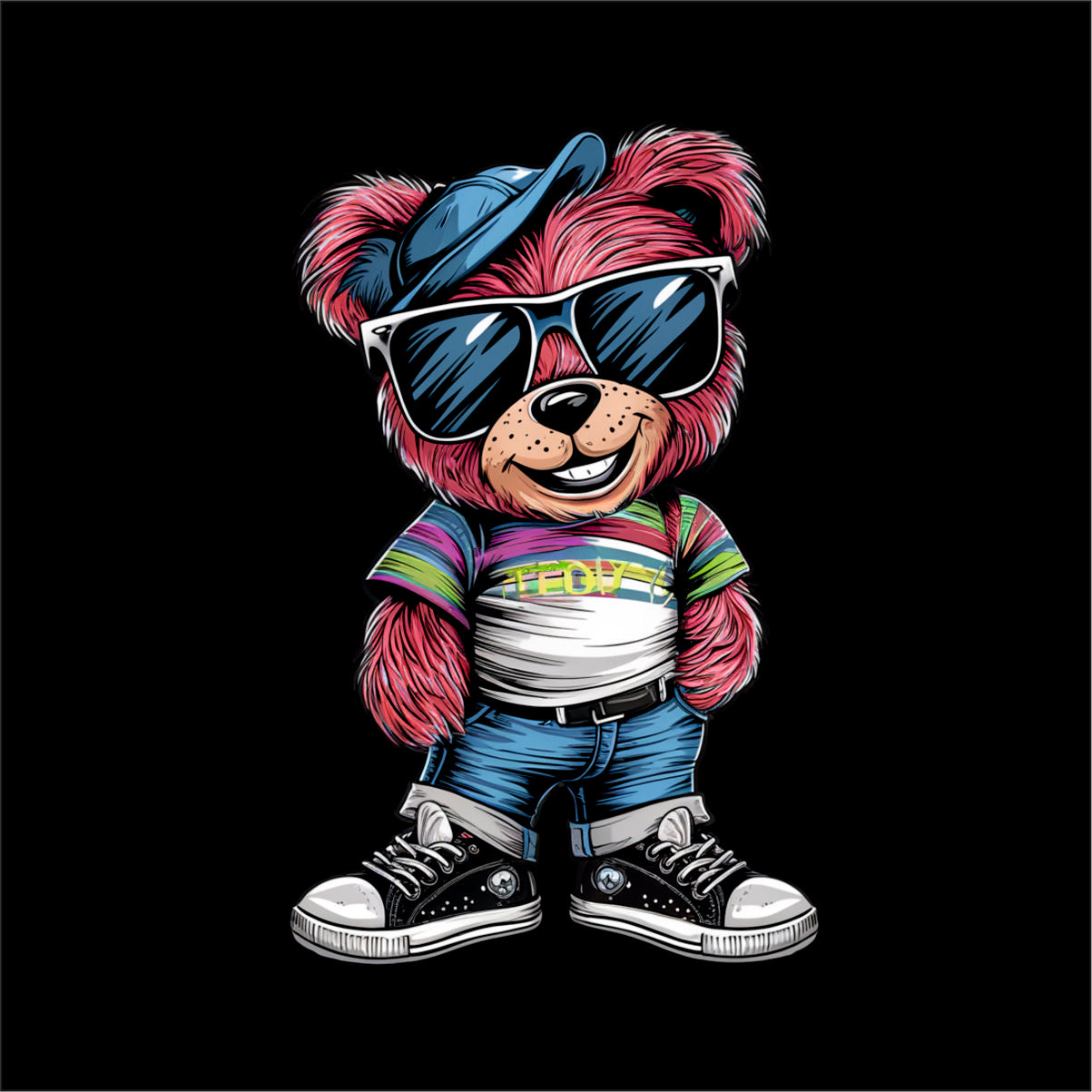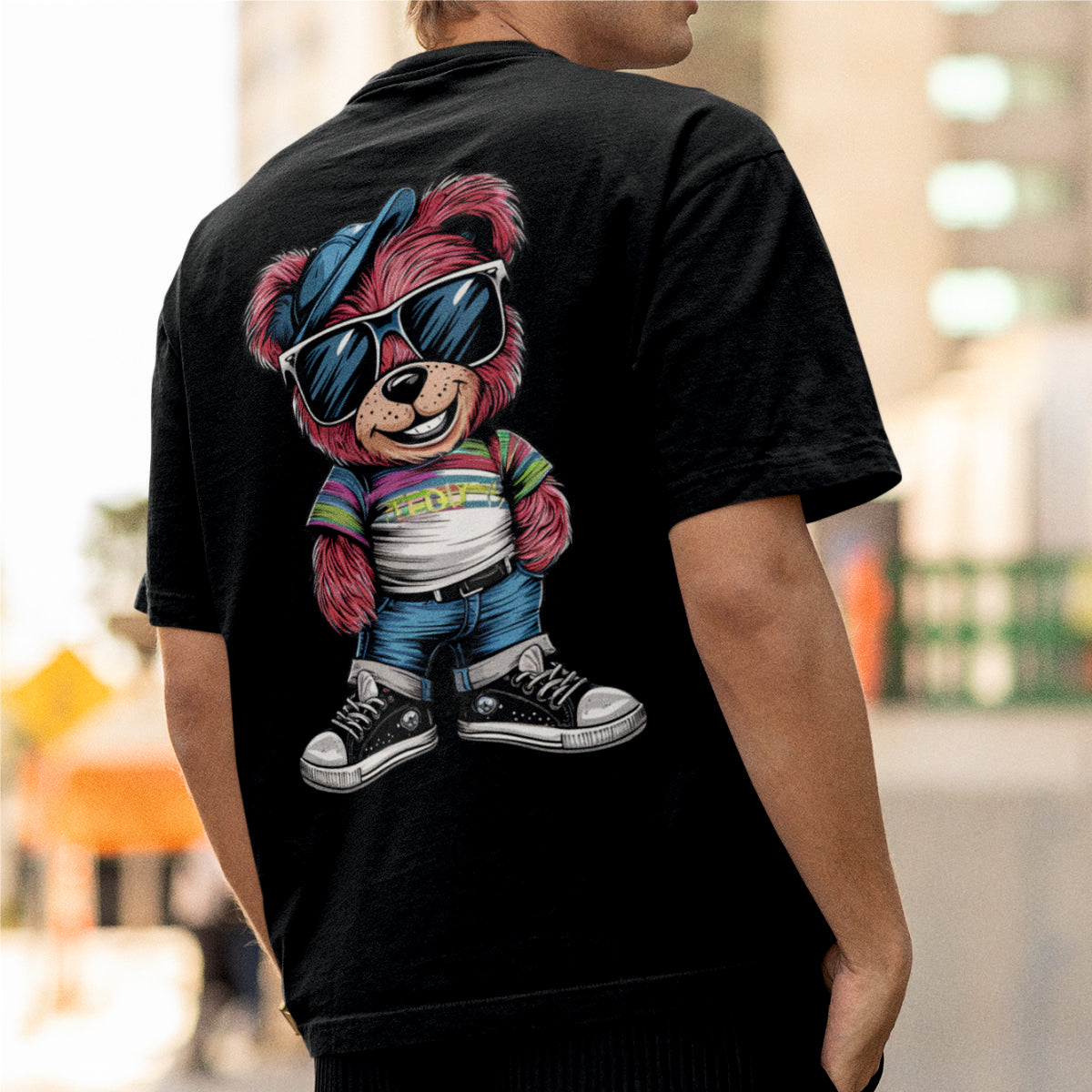 Juodi OVERSIZED marškinėliai su spauda ant nugaros "Kietas meškiukas"