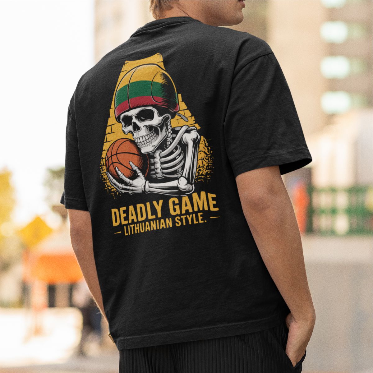 Juodi OVERSIZED marškinėliai su spauda ant nugaros "Lithuanian style"