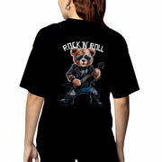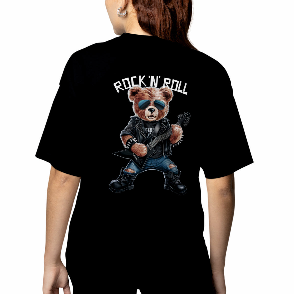 Juodi OVERSIZED marškinėliai su spauda ant nugaros "Rock 'n' Roll meškiukas"