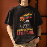 Įspėjame, kad dažų padengimui spalvoti marškinėliai yra impregnuoti specialiu skysčiu, dėl kurio kartais gali matytis skysčio dėmės. Todėl prieš dėvint, rekomenduojame marškinėlius išskalbti.