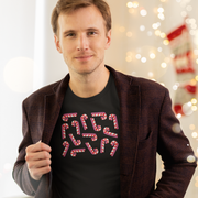Juodi UNISEX kalėdiniai marškinėliai "Kalėdiniai saldainiukai"