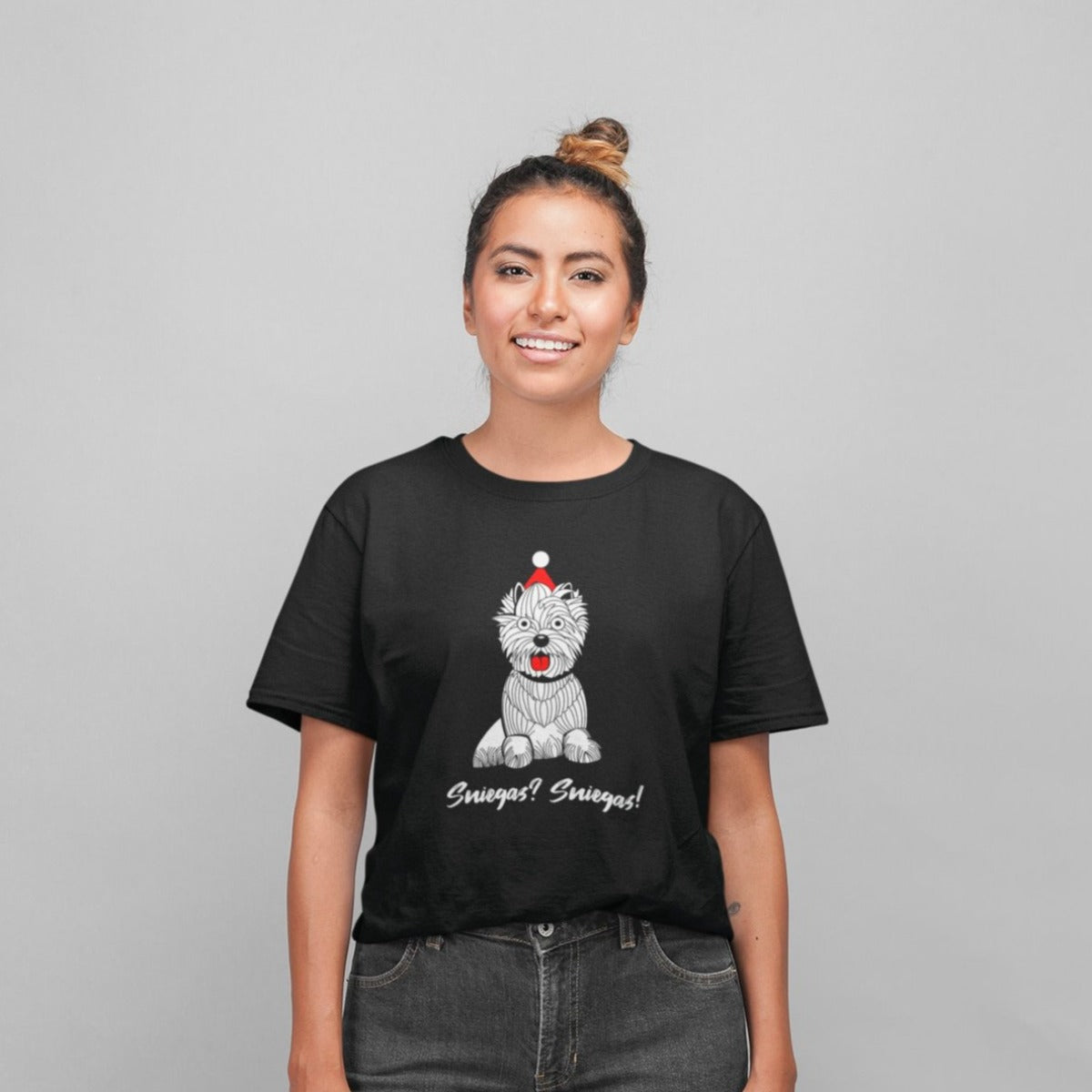 Juodi UNISEX kalėdiniai marškinėliai "Sniegas? Sniegas!"