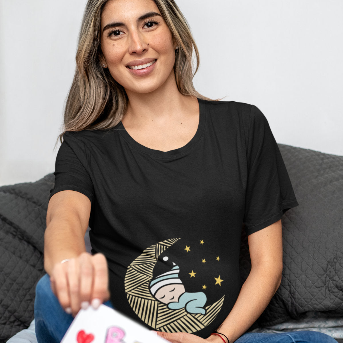 Juodi UNISEX marškinėliai "Berniukas mėnulyje“