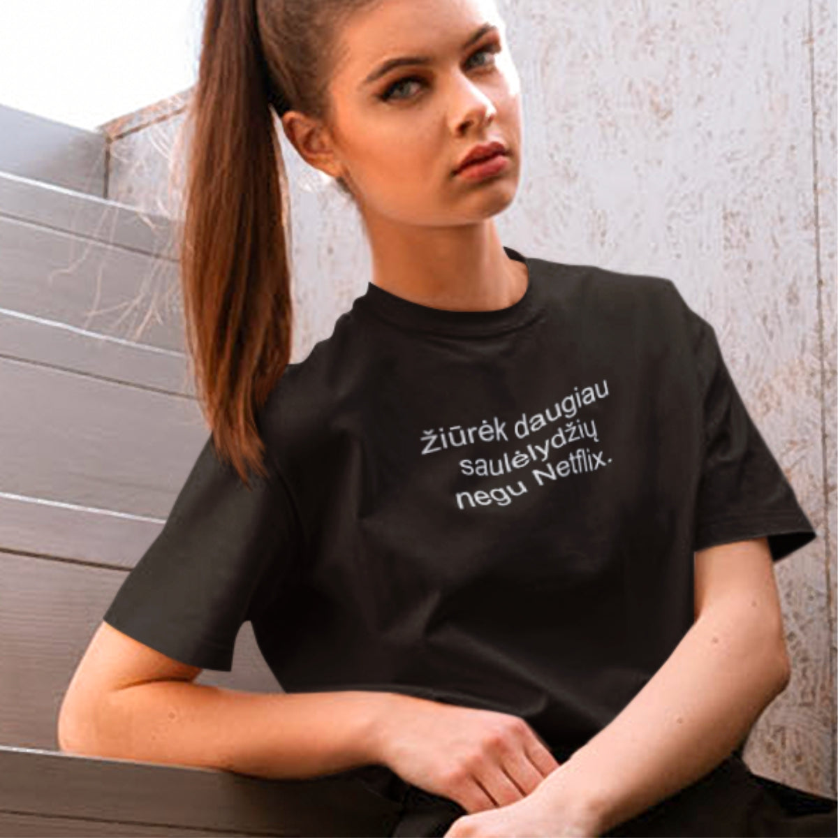 Juodi UNISEX marškinėliai "Daugiau saulėlydžių"