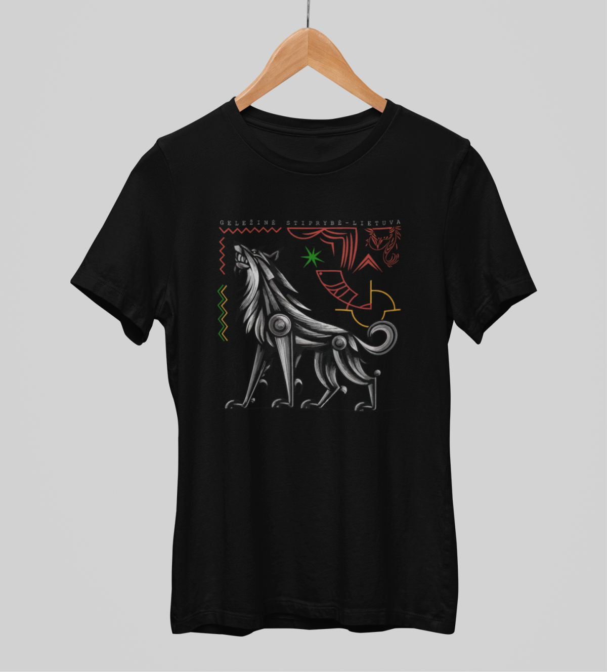 Juodi unisex marškinėliai "Geležinė stiprybė - Lietuva“