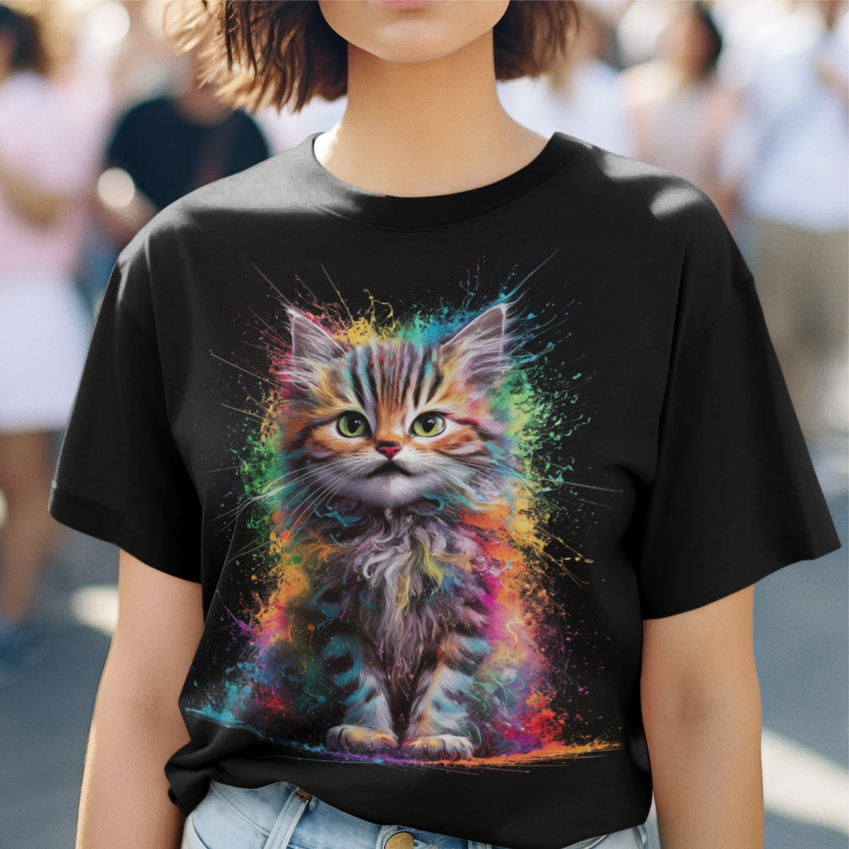 Juodi OVERSIZED marškinėliai "Kačiukas spalvose"