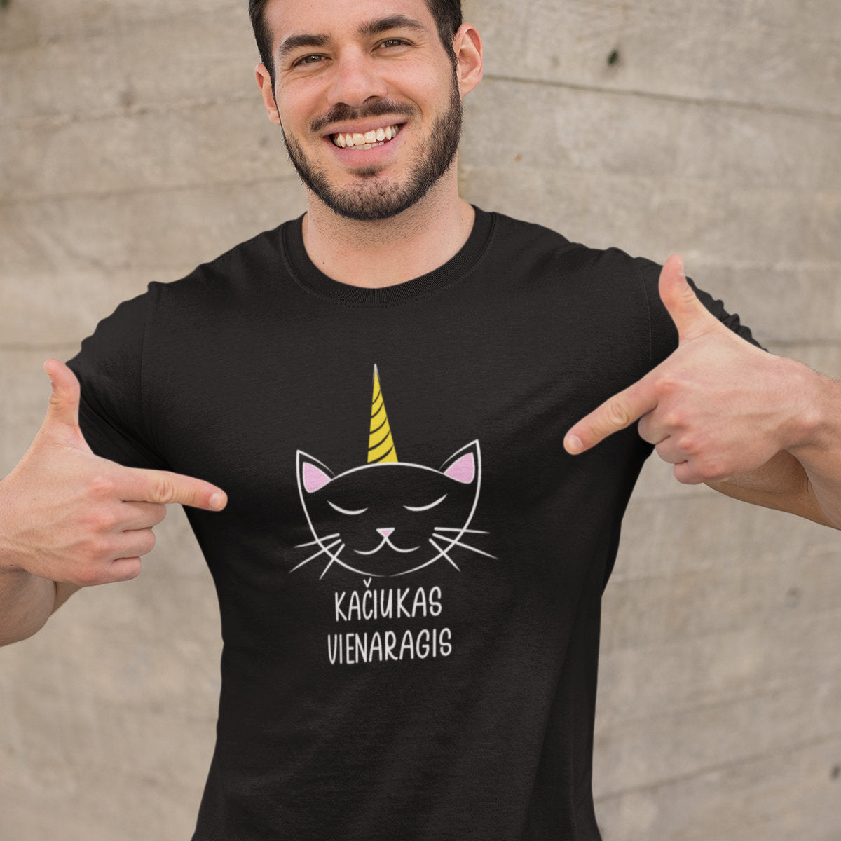 Juodi UNISEX marškinėliai "Kačiukas vienaragis"
