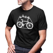 Juodi UNISEX marškinėliai "Kalnuose su dviračiu“