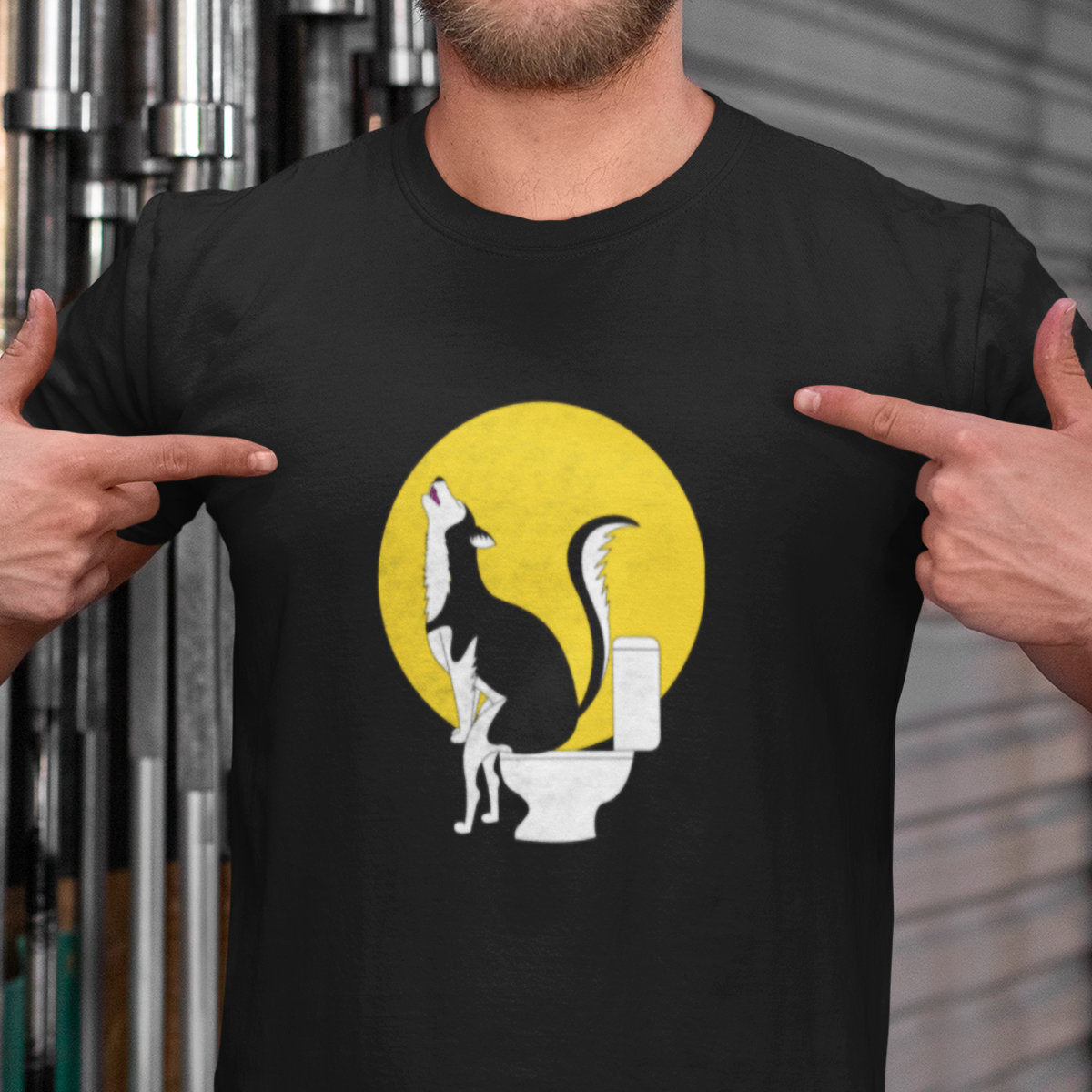 Juodi UNISEX marškinėliai "Kaukiantis haskis"