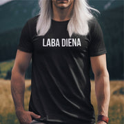 Juodi UNISEX marškinėliai "Laba diena" Pagaminta prekė (L, XL dydis)