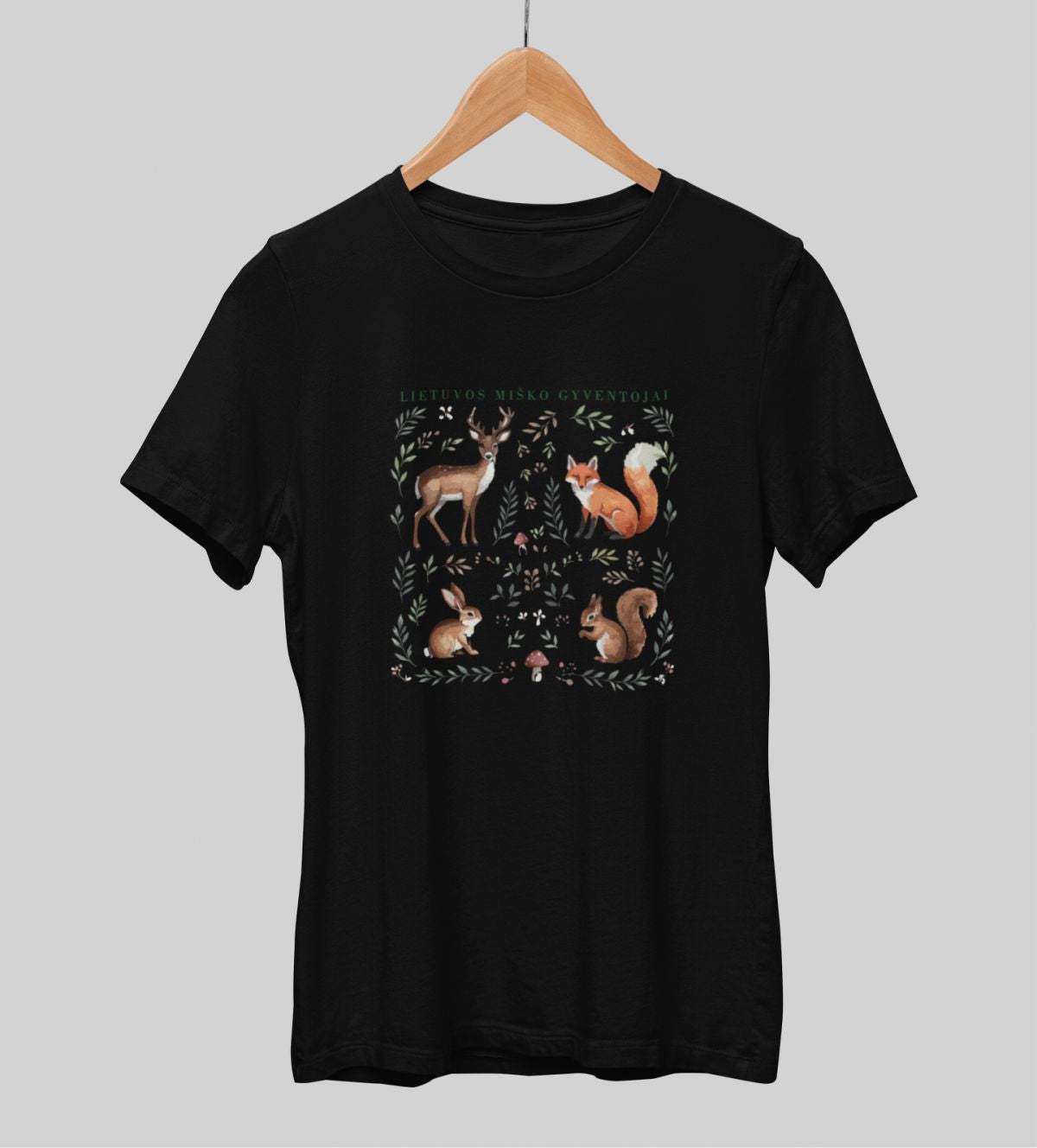 Juodi unisex marškinėliai "Lietuvos miško gyventojai“