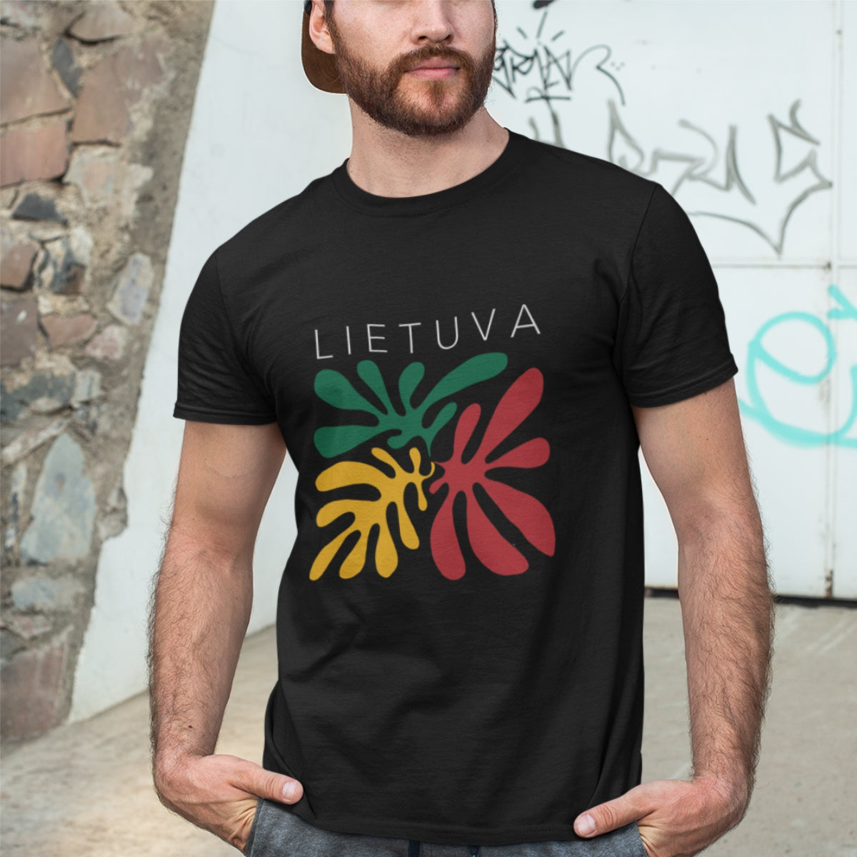 Juodi unisex marškinėliai "Lietuvos spalvos"