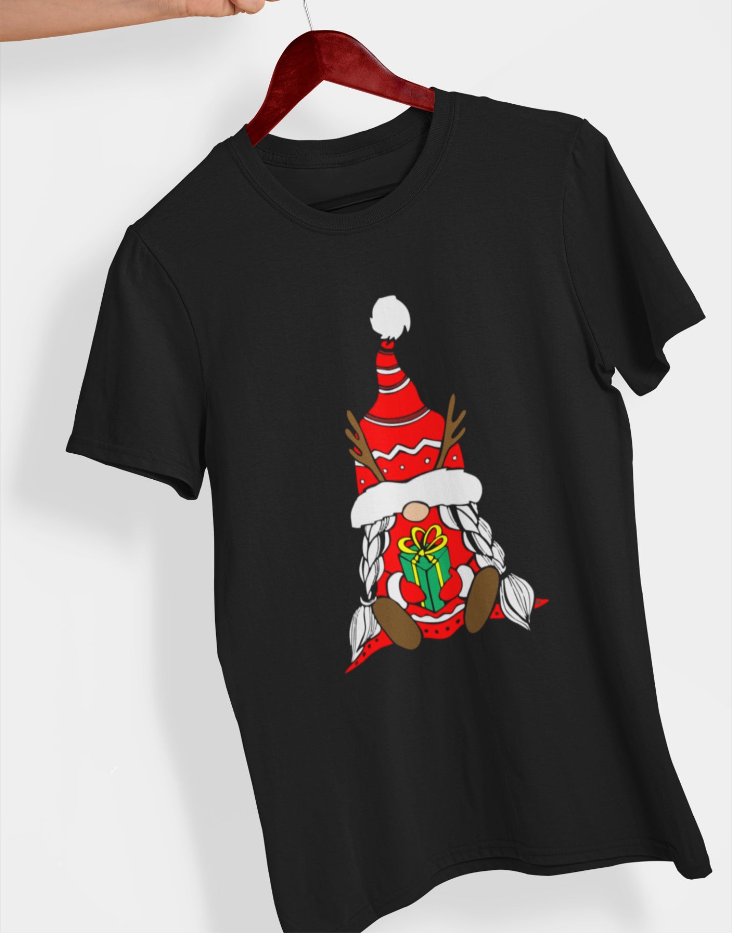 Juodi unisex marškinėliai "Nykštukas su dovanėle"