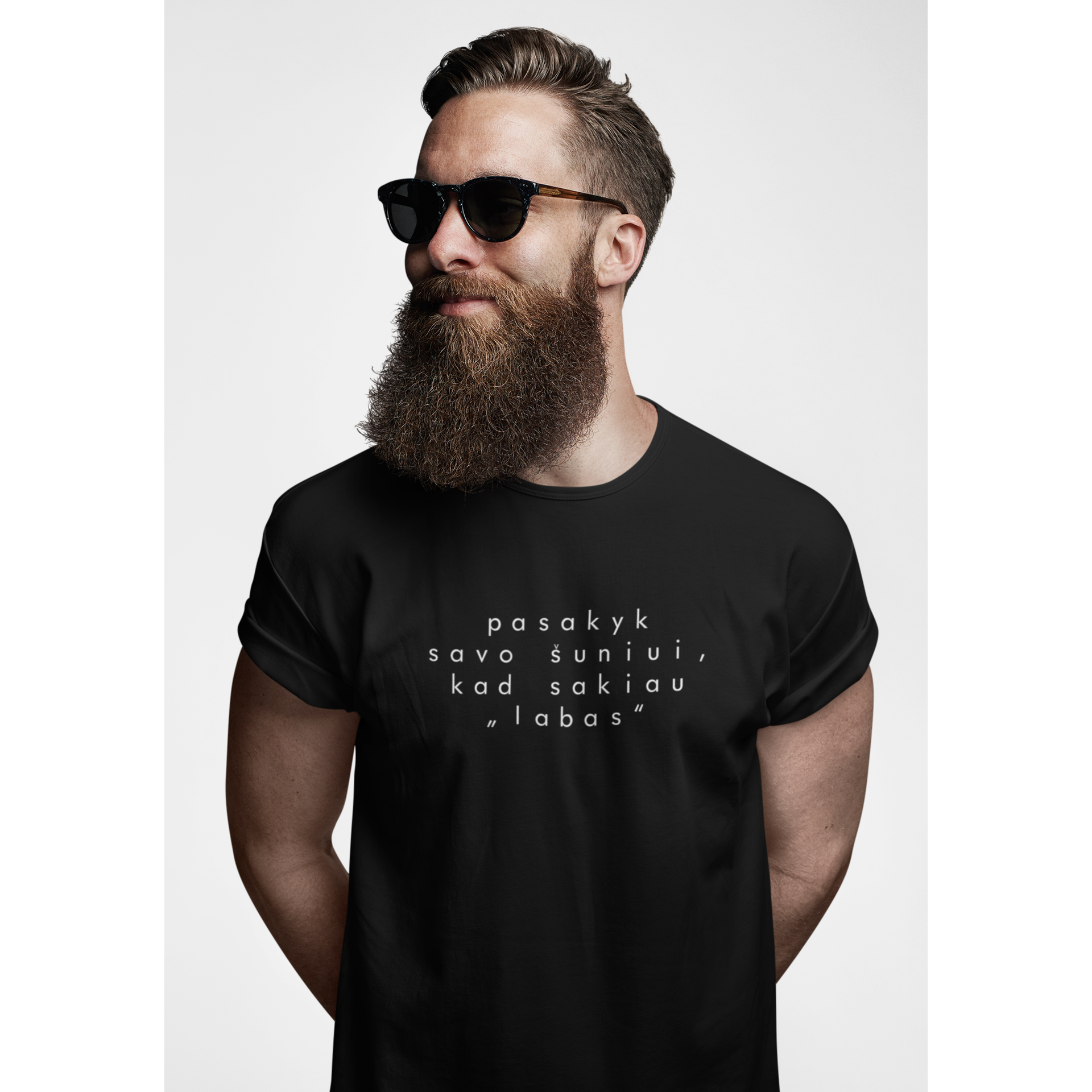 Juodi UNISEX marškinėliai "Pasakyk savo šuniui"