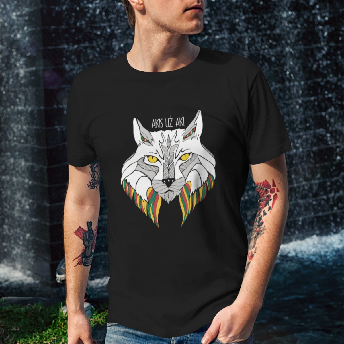 Juodi UNISEX marškinėliai "Spalvota lūšis"