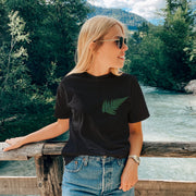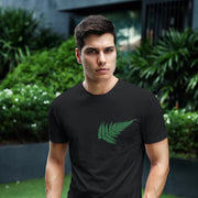 Juodi UNISEX marškinėliai su aksominiu žaliu marginimu "Papartis"