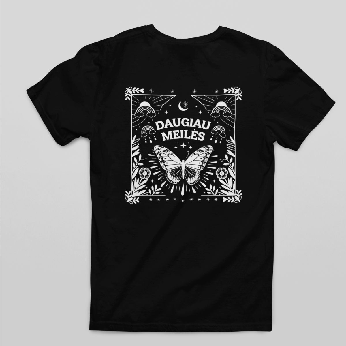 Juodi UNISEX marškinėliai su spauda ant nugaros "Daugiau meilės visiems"