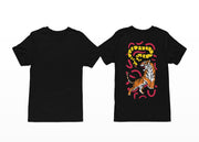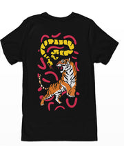 Juodi UNISEX marškinėliai su spauda ant nugaros "Tigras ir gyvatė"