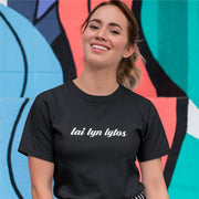 Juodi UNISEX marškinėliai su žemaitišku užrašu "Lai lyn lytos"