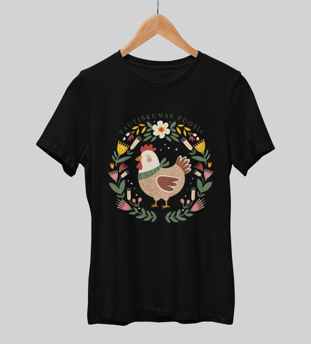 Juodi unisex marškinėliai "Tautiškumas puošia“
