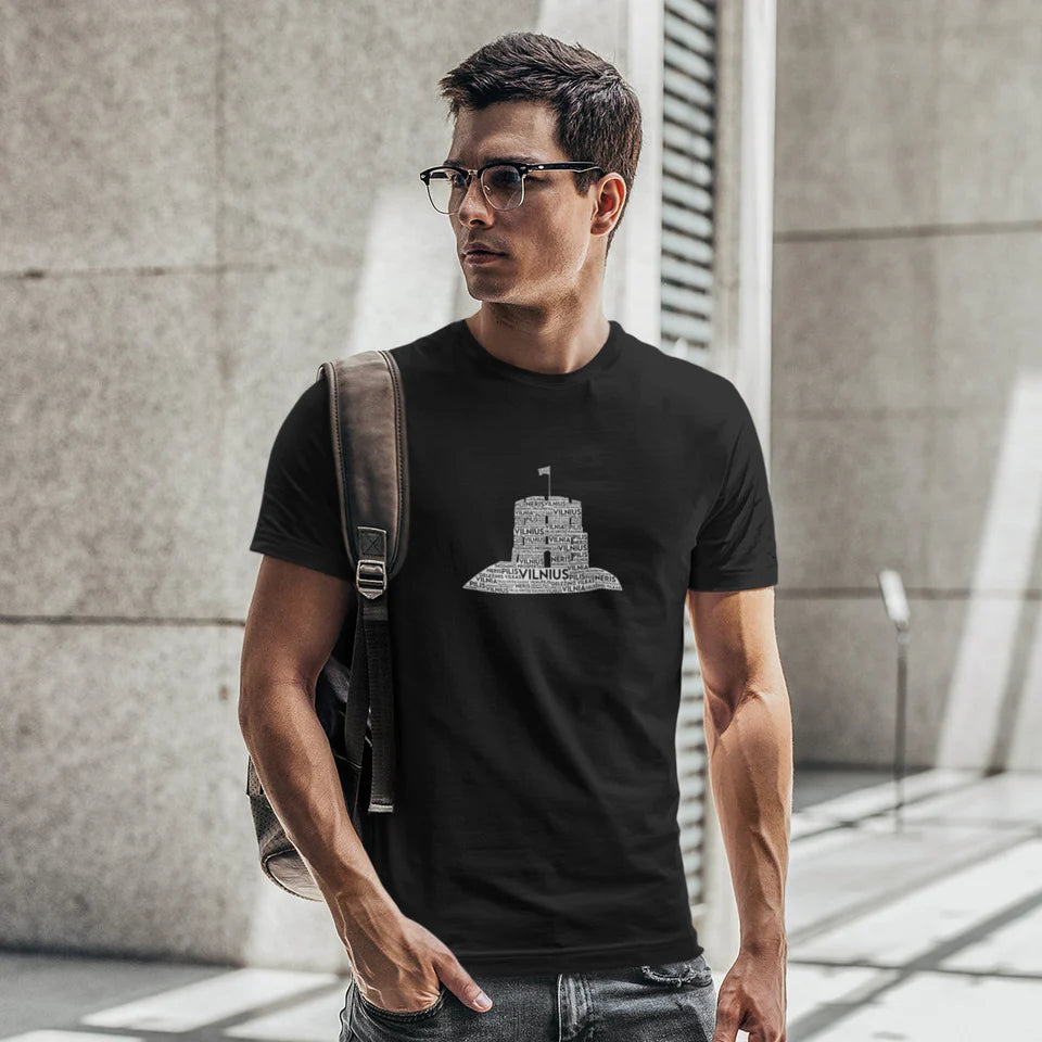 Juodi UNISEX marškinėliai "Vilniaus frazės" Spauda ant nugaros. Pagaminta prekė (L)
