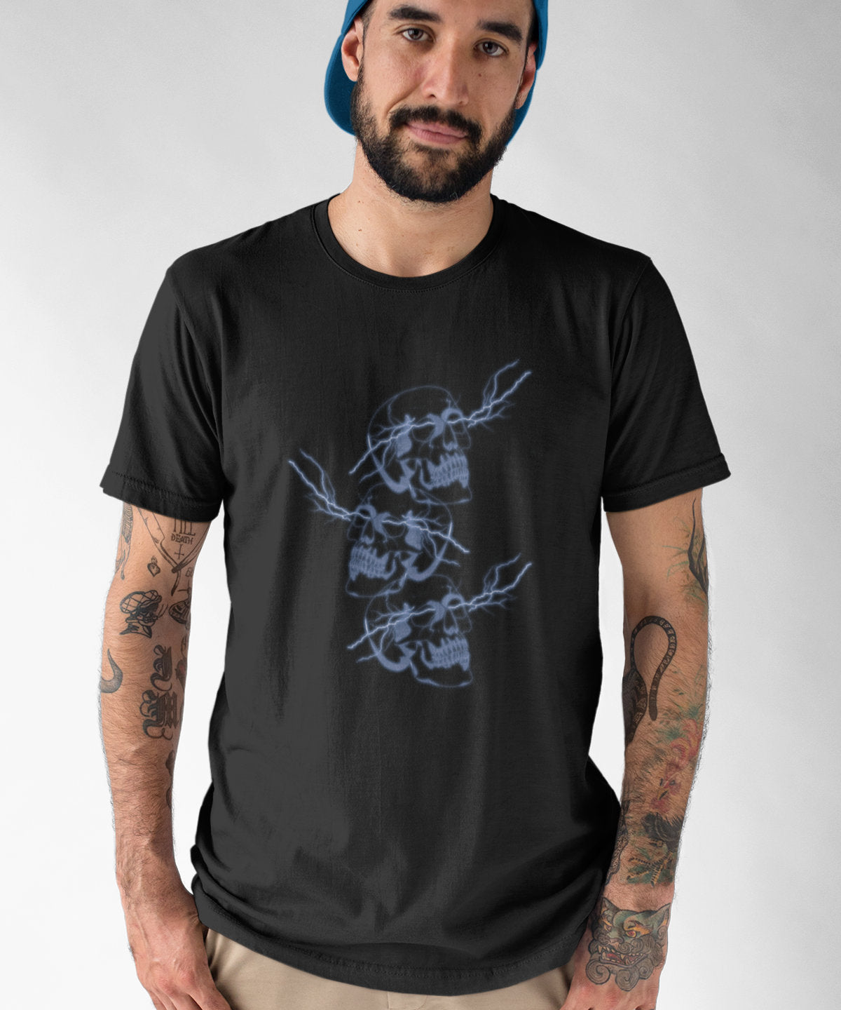 Juodi UNISEX marškinėliai "Žaibų kaukolės“