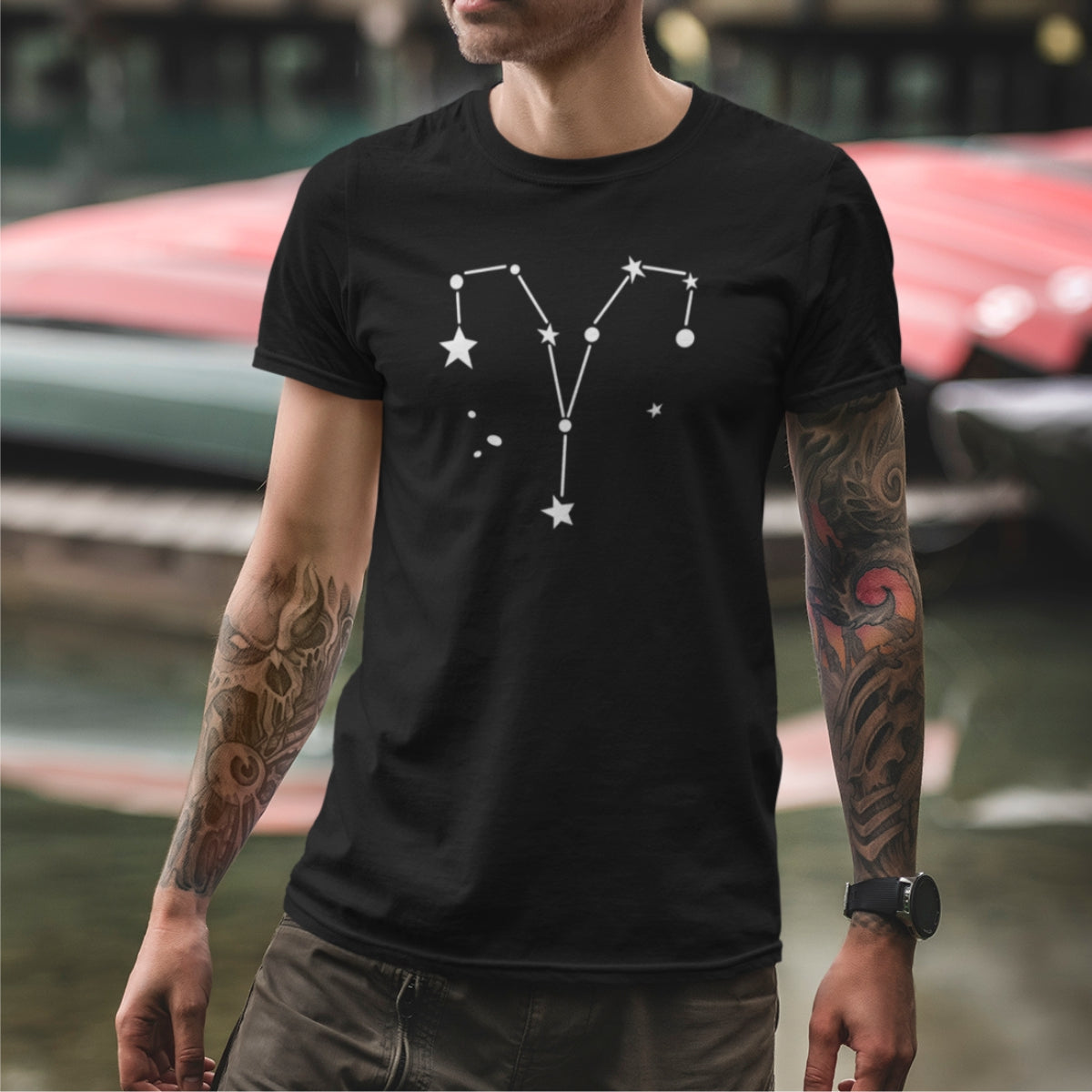 Juodi unisex marškinėliai zodiakas "Avinas“ Pagaminta preklė (L dydis)
