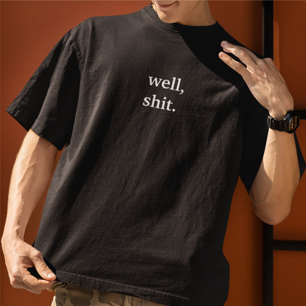 Juodi UNISEX OVERSIZED marškinėliai "Well, shit"
