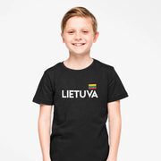 Juodi vaikiški marškinėliai "Lietuva su maža vėliava" (8 metų vaikui). Pagaminta prekė. Greitas išsiuntimas!