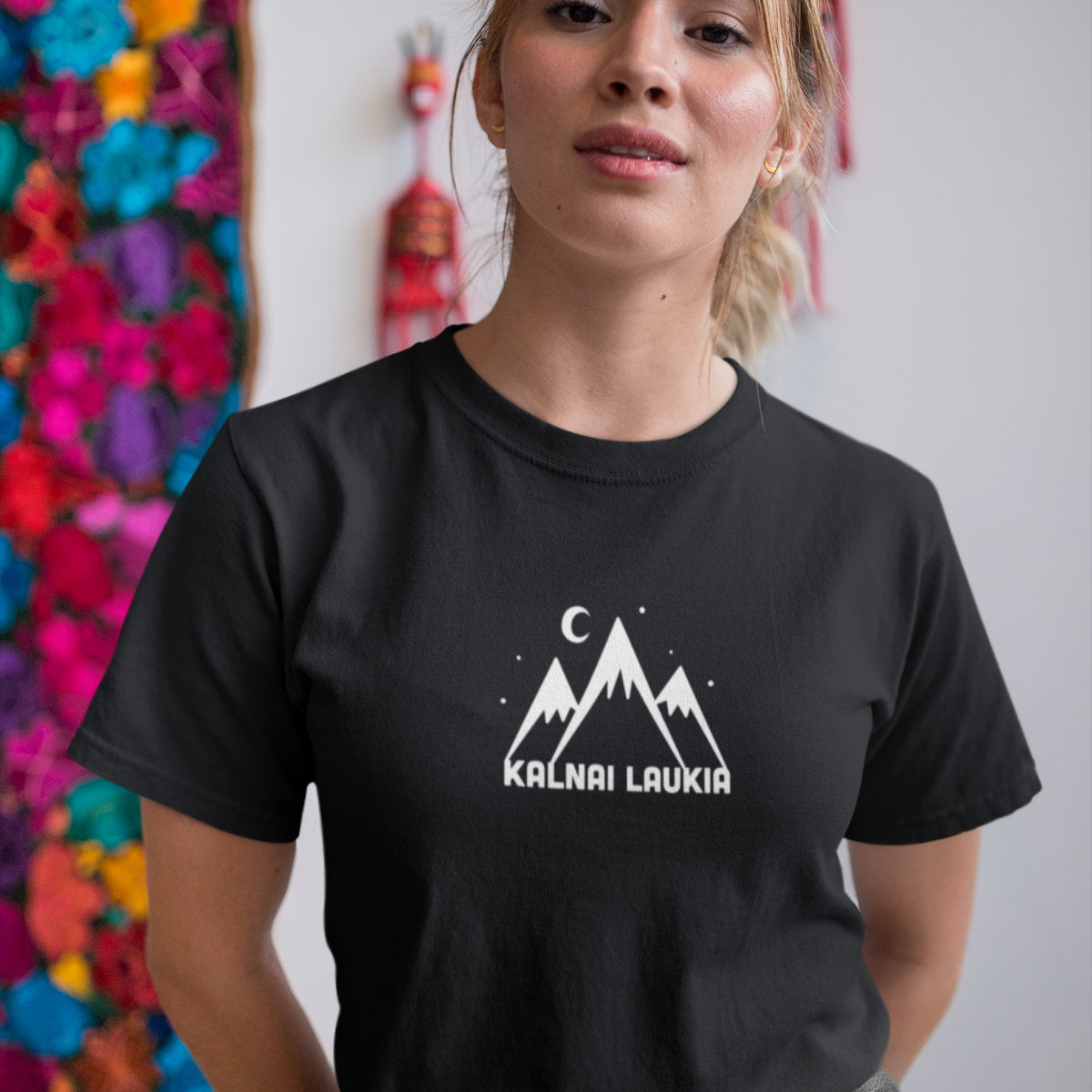 Juodos spalvos UNISEX marškinėliai "Kalnai laukia"