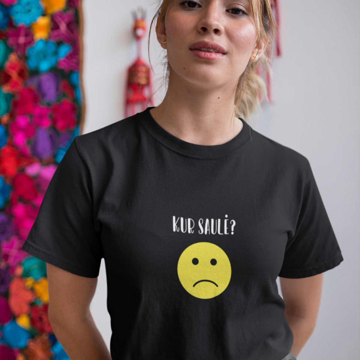 Juodos spalvos UNISEX marškinėliai "Kur saulė?"