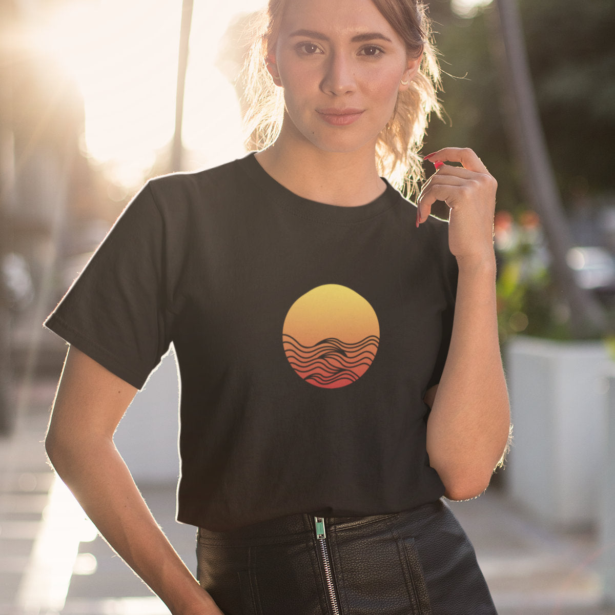 Juodos spalvos UNISEX marškinėliai "Saulėlydis"