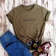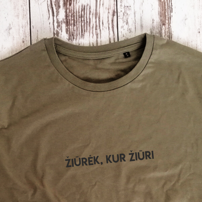 Khaki medvilnės marškinėliai "Žiūrėk, kur žiūri"
