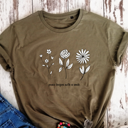 Khaki spalvos 100% medvilnės marškinėliai "Peace"