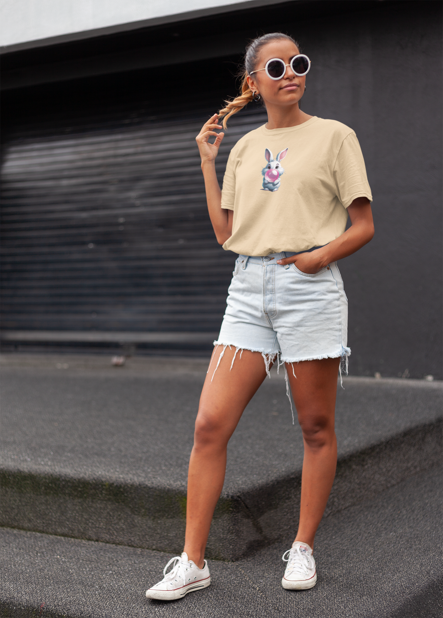 Kreminiai UNISEX marškinėliai "Zuikis puikis"