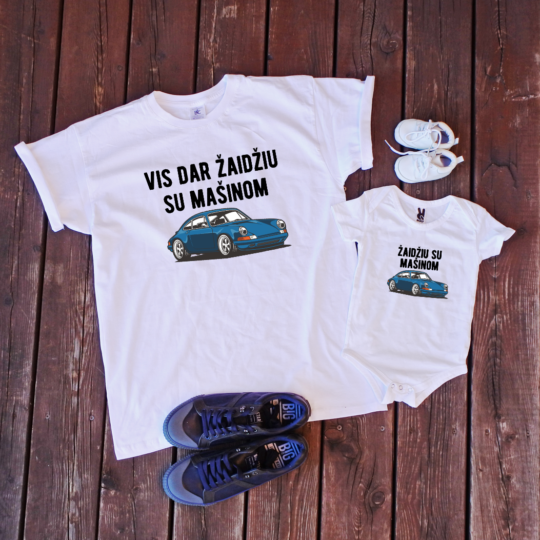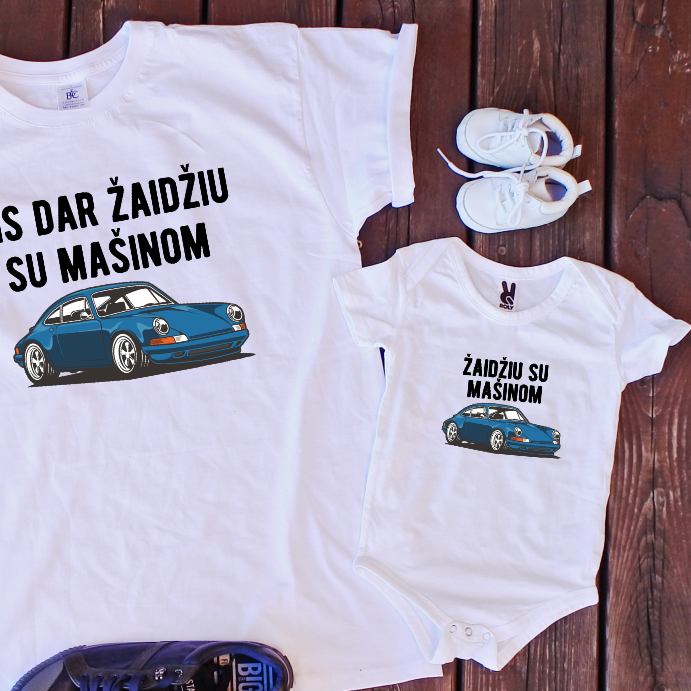 Marškinėliai ir bodis "Žaidžiu su mašinomis“