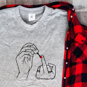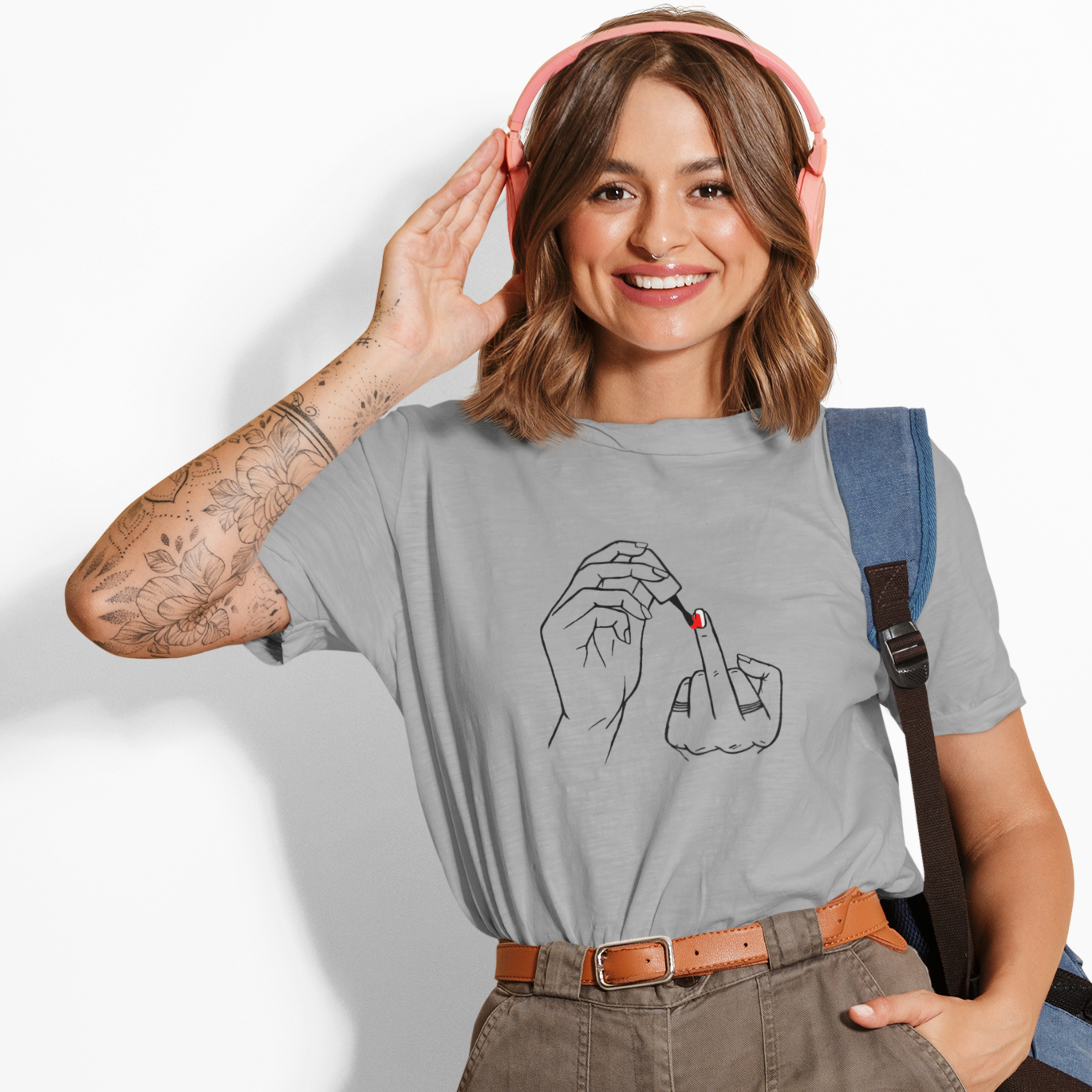 Melanžiniai 100% medvilnės marškinėliai "Raudonas nagų lakas"