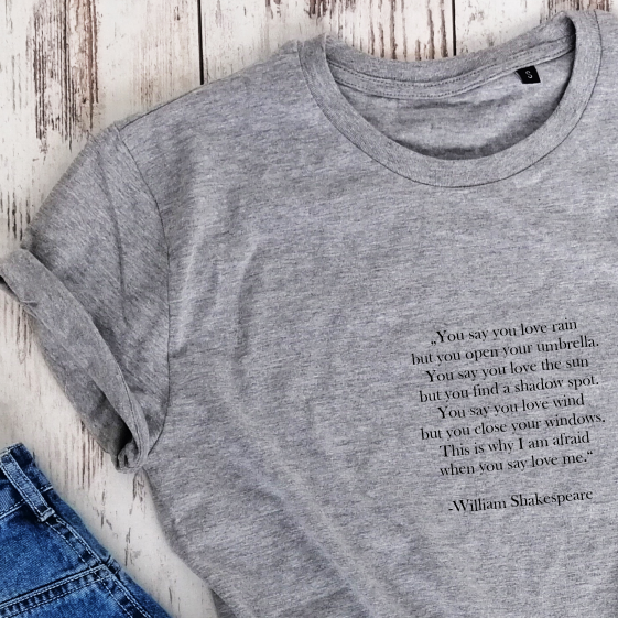 Melanžiniai 100% medvilnės marškinėliai "Šekspyro eilėraštis"