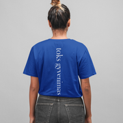 Mėlyni UNISEX marškinėliai su spauda ant nugaros "Toks gyvenimas"