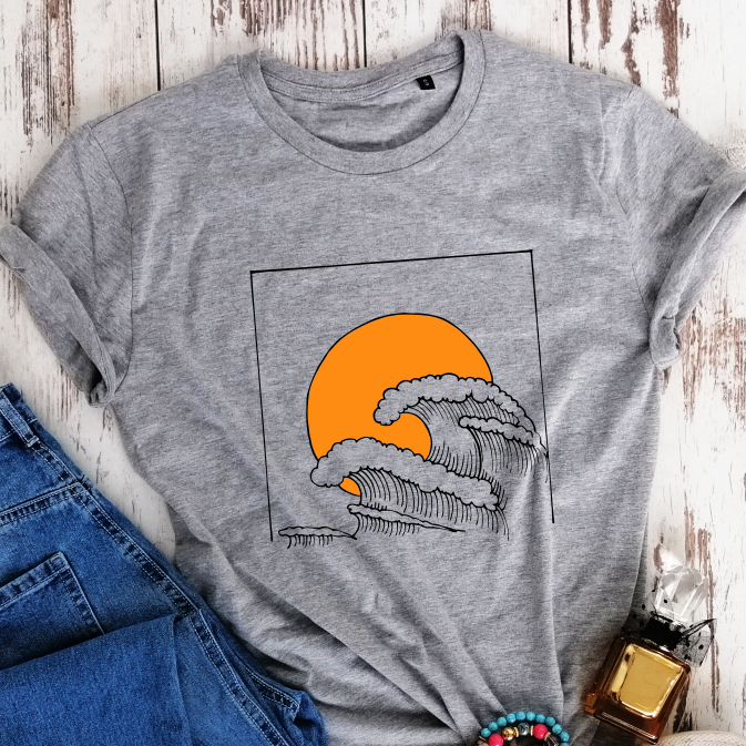 Pilki melanžiniai Unisex marškinėliai "Jūra"