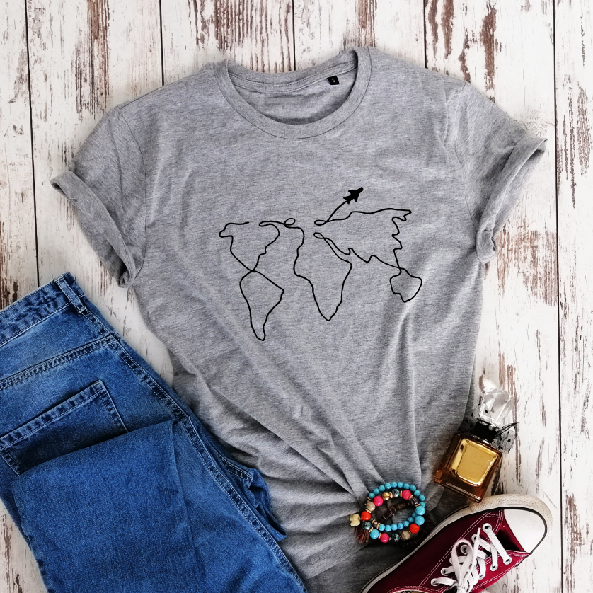 Pilki melanžiniai Unisex marškinėliai "Keliautojui"