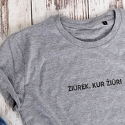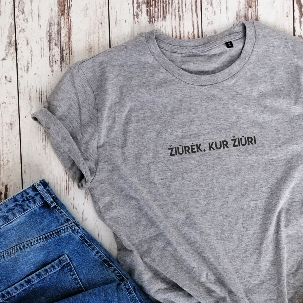 Pilki medvilnės marškinėliai "Žiūrėk, kur žiūri"