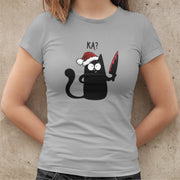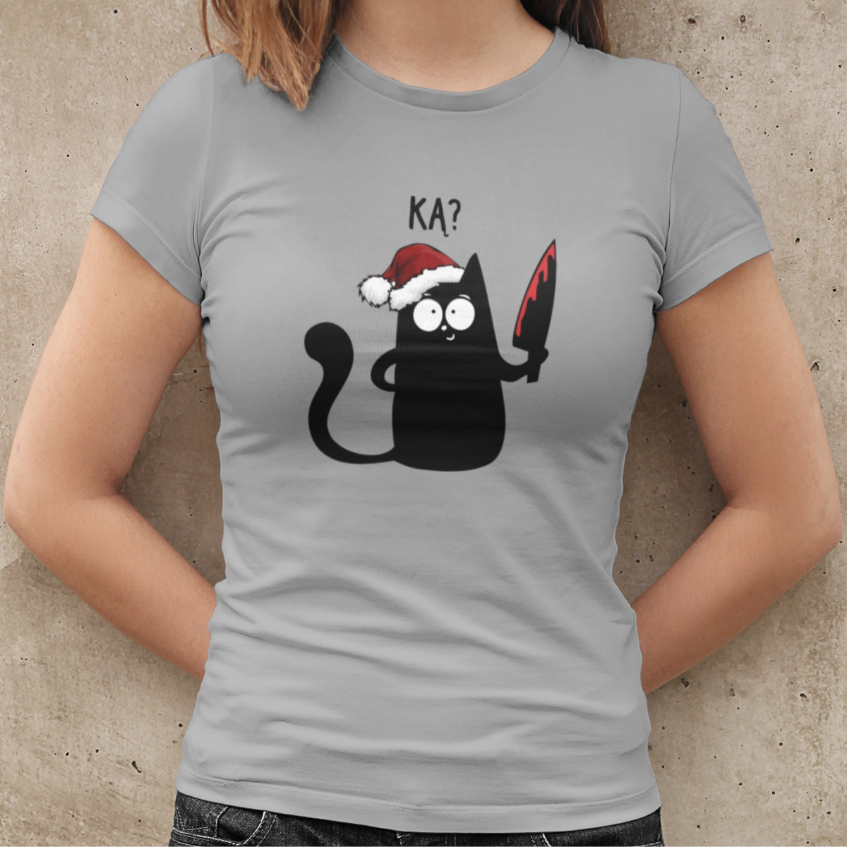 Pilki kalėdiniai moteriški marškinėliai "Ką katiniukas Kalėdos"