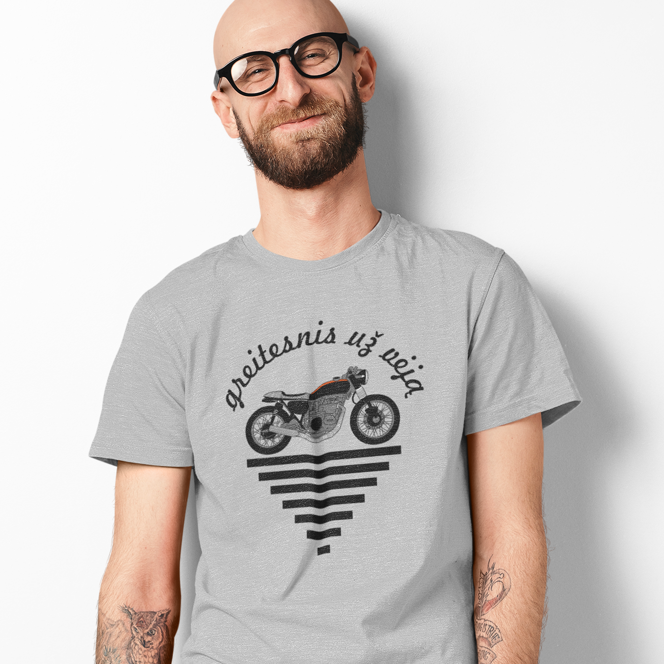 Pilki melanžiniai marškinėliai "Greitesnis už vėją“